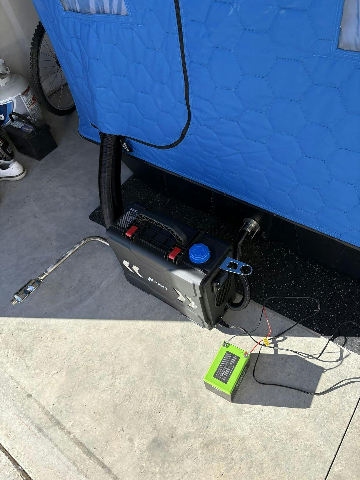 I love that you can set a specific temperature and let the heater adjust its power or even turn off altogether, all automatically based on room temp. Alternatively, you can manually set a fixed power level. The heater also comes with cables to connect to a 12V battery, though I've been running it from a wall outlet with no issues, using the included power adapter.